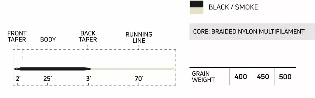 This Heavy Sinking Intermediate fly line is built with a stiff tropic jacket and a highly abrasion resistant fifty pound core. Features a 30ft fast sinking head paired with a super slick intermediate running line.