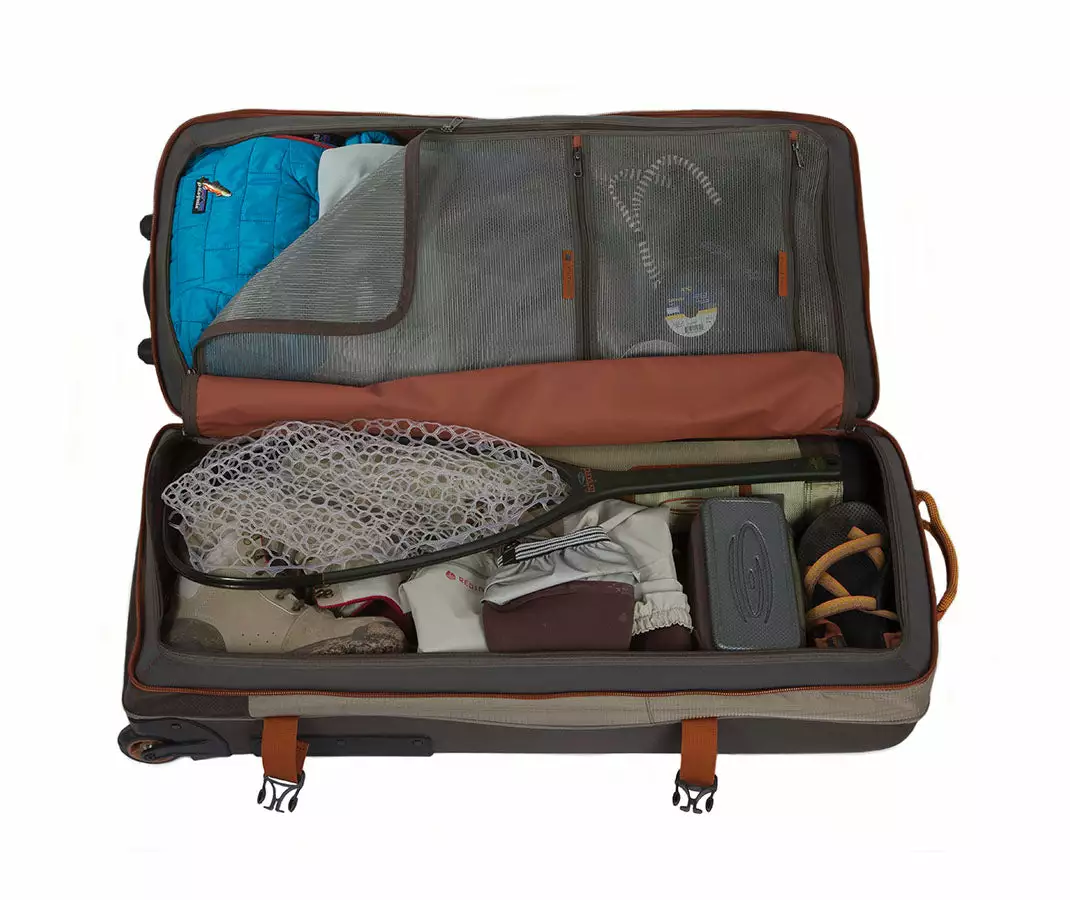 Named for the Grand Tetons…maybe the most rugged, iconic and beautiful peaks in the world. Functional, feature rich luggage system for multi-week adventures to all parts of the world. When you need a travel carry system to hold all of the necessary gear, enter the Grand Teton to do the job. The separate bottom compartment is designed to securely hold six 4-piece rod tubes. This is in addition to your boots, waders, smaller nets, and much more. The upper main compartment for your clothing and other travel gear can be accessed from the interior clamshell opening for easy packing or from the top of the bag for easier access while traveling.