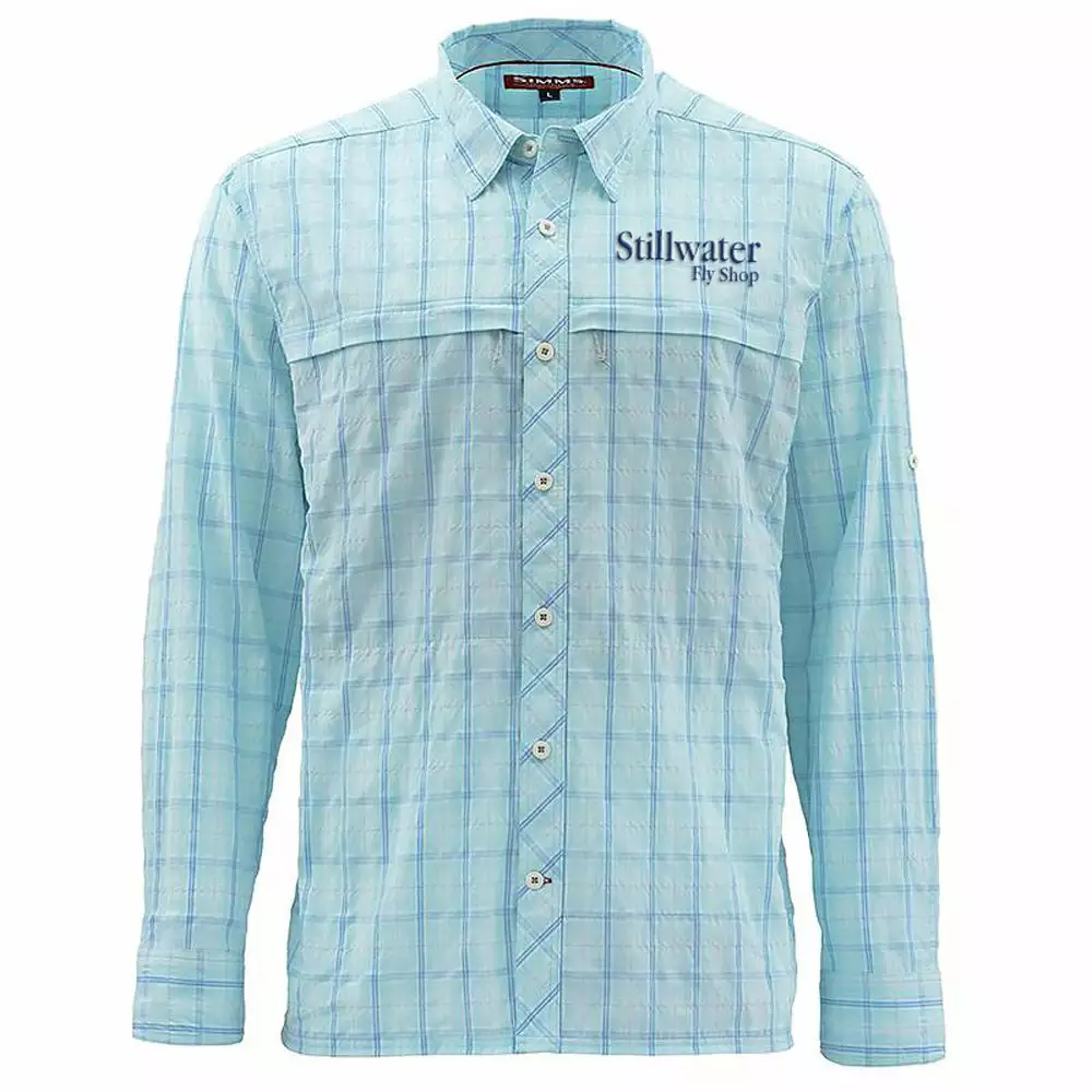 Embrace temperate comfort with this A/C activated shirt with Simms & Stillwater Logo