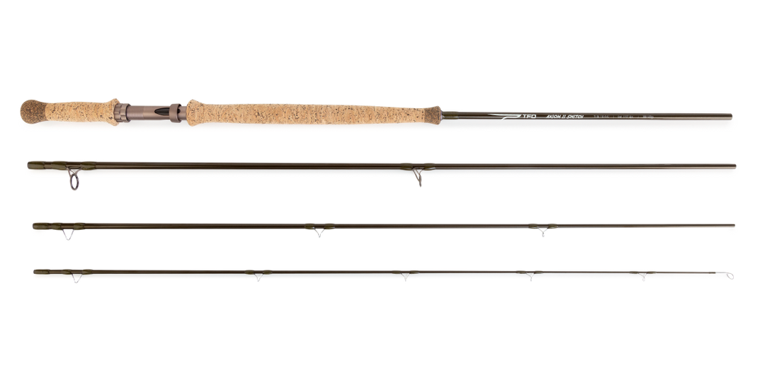 The Axiom II Switch is engineered for two-handed anglers providing optimal performance across a range of fishing techniques from a single rod. Now it’s possible to optimize a two-hand rod for all three techniques: “swinging flies,” “indicator fishing,” and “throwing lead”. TFO combined their highest modulus materials and proprietary Kevlar application with actions inspired by the industry-leading Deer Creek series. Axiom II breaks the code delivering the large grain windows necessary for a truly exceptional multi-technique two-handed rod. The Axiom Switch rod provides the caster the ability to achieve maximum targeted forward distance with the least amount of expended energy, while maintaining a functional rod length for line management and fish fighting.