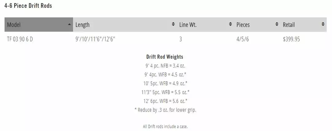 | Rod | 3wt 9'/10'/11'6"/12'6" 4/5/6pc |
